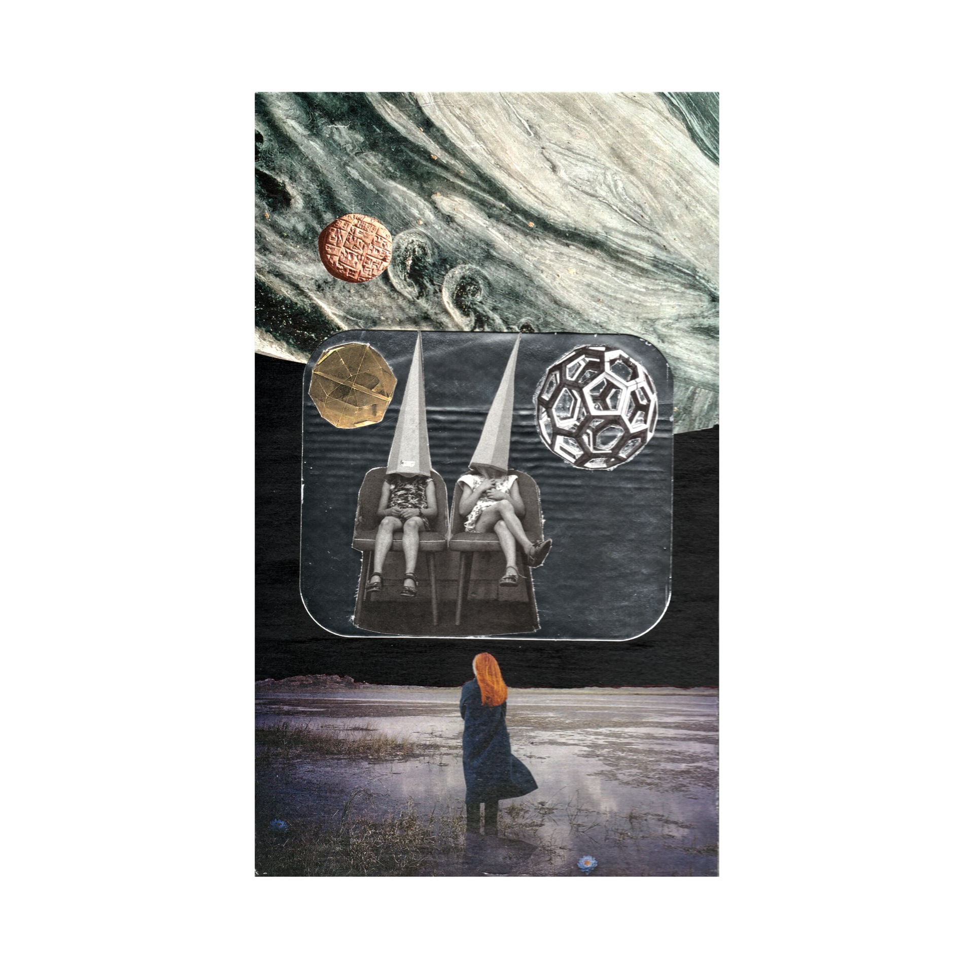 “Compleanni” è una serie di collage analogici, di formati diversi, iniziata nel 2025 come pratica di dono: piccole opere pensate come regali di compleanno per amici e amiche. Realizzati con fotografie trovate, ritagli, carta e colla, questi lavori prendono forma come ritratti indiretti, piccoli paesaggi interiori in cui memorie, oggetti, figure e spazi si ricompongono, evocando un’atmosfera, un immaginario, una costellazione emotiva. Ogni collage è traccia di un gesto di riuso e trasformazione: una pratica affettiva ed ecologica, in cui immagini preesistenti trovano nuove relazioni, nuove collocazioni e nuove possibilità di racconto.